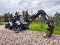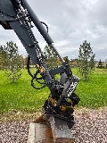 Koneessa hydrauliset pikakiinnikkeet sekä kuormaajassa että kaivuulaitteessa, Marttiinin Roto-10 pyörittäjä pihdeillä ja kourahydrauliikalla (Länkkärin oma kiinnike).