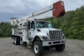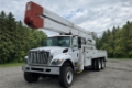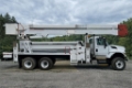 98′ A77-TE93 boom which features a 7 foot telescopic upper boom and elevator that is mounted on a 2014 International 7400 SBA 6×6 chassis. This truck is equipped with a 7.6L diesel engine backed by a 5 speed Allison automatic transmission. 1,000 lbs jib capacity, 2 person, 800 lbs basket capacity, continuous rotation, and 4 hydraulic outriggers.