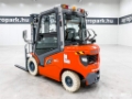 - - Hydraulics: 4/4 control valves, lever control (the 4th control is free, can be expanded with extra functions such as hydraulic fork positioning, which makes the hydraulic movement (narrowing, widening) of the pallet forks within the frame more comfortable)