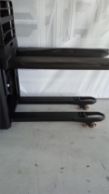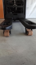 Lastschutzgitter Höhe 500 mm, Schildkrötentaste am Deichselgriff, Lastanzeige in 50 kg Schritte im Display, Geschwindigkeit 10 km/h, Plattform manuell hochklappbar, Seitenschutzbügel klappbar, Fingerschutz Plexiglas, Gabelrollen Tandem, Antriebsrad Premium, Stützrad Premium, PIN-Code Aktivierung