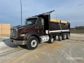 Located in Lane 8 Spot 3, Navistar N13 6 Cylinder 12.4 cid Diesel 430 hp Engine, 2016 US EPA Label, Requires Diesel Exhaust Fluid, 12065 Engine hrs, Engine Brake, Allison Automatic Transmission, 20000 lb Front Axle, 70000 lb Rears, 66000 lb GVWR, Aluminum Wheels, 425/65R22.5 Front Tires, 11R22.5 Rear Tires, 3 Steerable Air Lift Pusher Axle, Dual Steering Boxes, Hendrickson Haulmaax Rubber over Walking Beam Suspension, 272 in Wheelbase, Godwin 20 ft Long x 54 in High Steel Body, Round Bottom, Electric Roll Tarp, Air High-Lift Tailgate