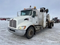 Located in Lane 47 Spot 20, Paccar PX-8 6 Cylinder 8.3 L Diesel 330 hp Engine, 2008 US EPA Label, 12252 Engine hrs, Engine Brake, Eaton Fuller RTO11908LL 8LL Manual Transmission, Differential Lock, 14596 lb Front Axle, 22994 lb Rears, 4.78:1 Axle Ratio, 17055 kg GVWR, Aluminum Wheels, 11R22.5 Front Tires, 11R22.5 Rear Tires, Air Ride Suspension, 246 in Wheelbase, PTO, 2.4 m - 13.8 m 5 Section Boom, Straight Down Outriggers, Hiab 200 C-5 7000 kg Hydraulic Crane, 6 ft x 96 in Bed, 5th Wheel